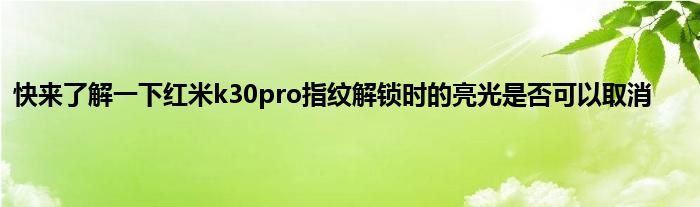 现在大家使用手机的频率越来越频繁,手机也为我们提供了许多的便利,今天小编也来说一下这个快来了解一下红米k30pro指纹解锁时的亮光是否可以取消相关的文章,这个操作其实不复杂,接下来就给大家介绍一下快来了解一下红米k30pro指纹解锁时的亮光是否可以取消,一起来看看吧: