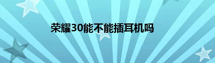 荣耀30不能插耳机吗?