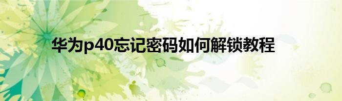 华为p40忘记密码怎么解锁?