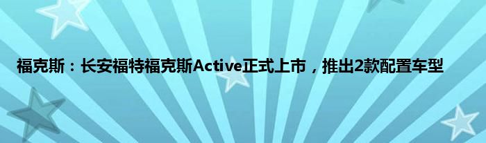今天来分享一篇个人对福克斯:长安福特福克斯Active正式上市,推出2款配置车型相关分析,众所周知,无论是在坊间民众,还是在汽车媒体的议论中,都是不错的,至于产品到底香不香,通过测试还是可以对福克斯:长安福特福克斯Active正式上市,推出2款配置车型的产品力分析分析的,一起来看看吧:
