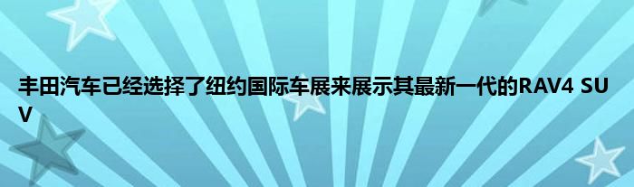 丰田汽车已经选择了纽约国际车展来展示其最新一代的RAV4 SUV。某些人称赞这种流行的跨界车于1994年开始掀起家庭SUV的热潮,但是最新的车型离它的根源再远不过了。
