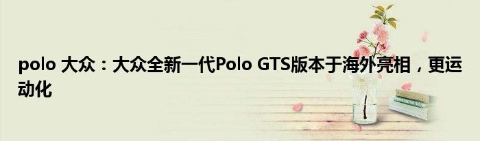 近日,大众全新一代Polo GTS版本出现在海外,该车类似于高尔夫的GTI、速腾的GLI版本,车型定位更趋运动化。