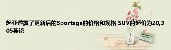 起亚透露了更新后的Sportage的价格和规格,SUV的起价为20,305英镑。