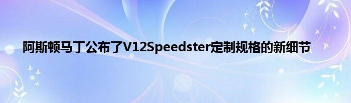 阿斯顿·马丁(Aston Martin)公布了V12 Speedster定制规格的新细节,肯定会强调这辆车的即时收藏者的物品状态。阿斯顿·马丁(Aston Martin)透露了V12 Speedster的可选定制规格。