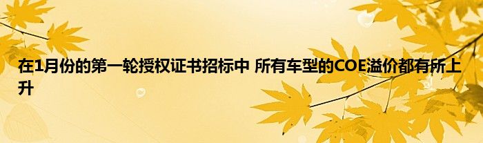 在1月份的第一轮投标中,权利证明书(COE)的价格在所有类别中都有所上升。 1月首轮招标COE溢价全面上涨 对于发动机容量高达1,600cc、