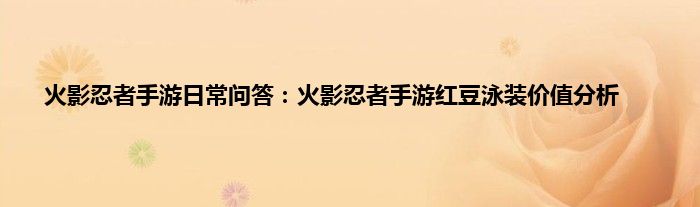 以上就是火影忍者手游日常问答:火影忍者手游红豆泳装价值分析的推荐,相信通过火影忍者手游日常问答:火影忍者手游红豆泳装价值分析这篇文章能帮到你,也欢迎对游戏很感兴趣小伙伴们一起来探讨。