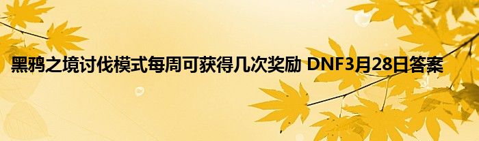 DNF开启了每日一题活动,这次的活动里我们需要在公众号上回答题目,如果正确回答的话就能领取到一些奖励。黑鸦之境讨伐模式每周可获得几次奖励?这是地下城与勇士3月28日的题目,下面小编带来了具体答案,希望大家喜欢。