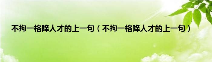 大家好,小科来为大家解答以上问题。不拘一格降人才的上一句,不拘一格降人才的上一句很多人还不知道,现在让我们一起来看看吧!