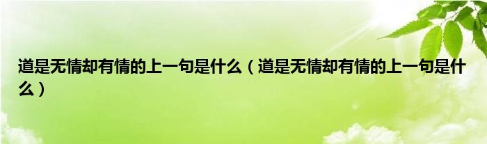 大家好,小科来为大家解答以上问题。道是无情却有情的上一句是什么,道是无情却有情的上一句是什么很多人还不知道,现在让我们一起来看看吧!