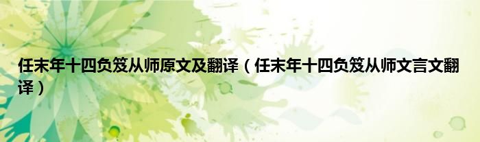 大家好,小科来为大家解答以上问题。任末年十四负笈从师原文及翻译,任末年十四负笈从师文言文翻译很多人还不知道,现在让我们一起来看看吧!