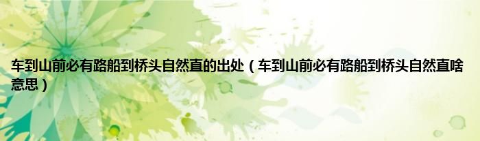 大家好,小科来为大家解答以上问题。车到山前必有路船到桥头自然直的出处,车到山前必有路船到桥头自然直啥意思很多人还不知道,现在让我们一起来看看吧!