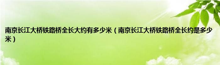 大家好,小科来为大家解答以上问题。南京长江大桥铁路桥全长大约有多少米,南京长江大桥铁路桥全长约是多少米很多人还不知道,现在让我们一起来看看吧!