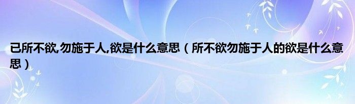 大家好,小科来为大家解答以上问题。已所不欲,勿施于人,欲是什么意思,所不欲勿施于人的欲是什么意思很多人还不知道,现在让我们一起来看看吧!