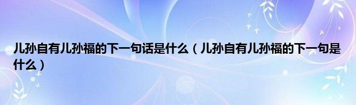 大家好,小科来为大家解答以上问题。儿孙自有儿孙福的下一句话是什么,儿孙自有儿孙福的下一句是什么很多人还不知道,现在让我们一起来看看吧!