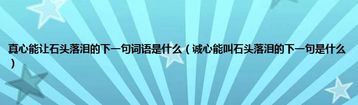 大家好,小科来为大家解答以上问题。真心能让石头落泪的下一句词语是什么,诚心能叫石头落泪的下一句是什么很多人还不知道,现在让我们一起来看看吧!