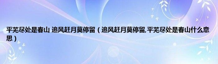 大家好,小科来为大家解答以上问题。平芜尽处是春山 追风赶月莫停留,追风赶月莫停留,平芜尽处是春山什么意思很多人还不知道,现在让我们一起来看看吧!