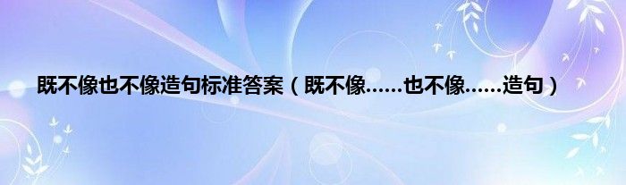 大家好,小科来为大家解答以上问题。既不像也不像造句标准答案,既不像......也不像......造句很多人还不知道,现在让我们一起来看看吧!
