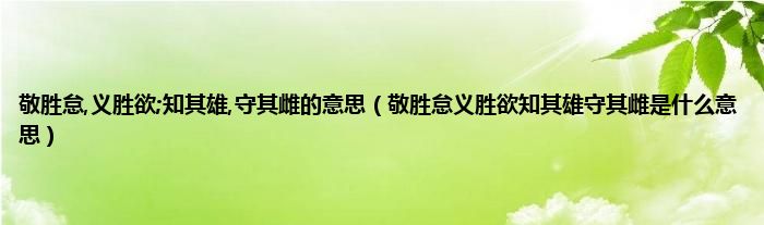 大家好,小科来为大家解答以上问题。敬胜怠,义胜欲;知其雄,守其雌的意思,敬胜怠义胜欲知其雄守其雌是什么意思很多人还不知道,现在让我们一起来看看吧!