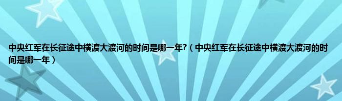 大家好,小科来为大家解答以上问题。中央红军在长征途中横渡大渡河的时间是哪一年?,中央红军在长征途中横渡大渡河的时间是哪一年很多人还不知道,现在让我们一起来看看吧!