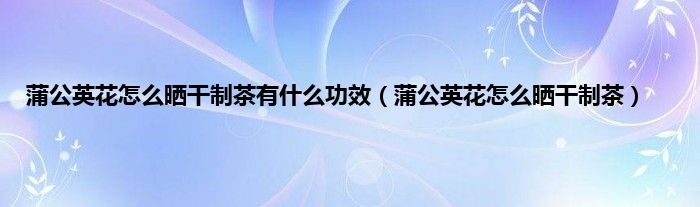 大家好,小科来为大家解答以上问题。蒲公英花怎么晒干制茶有什么功效,蒲公英花怎么晒干制茶很多人还不知道,现在让我们一起来看看吧!
