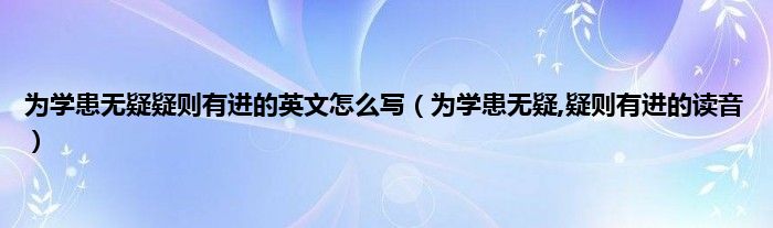 大家好,小科来为大家解答以上问题。为学患无疑疑则有进的英文怎么写,为学患无疑,疑则有进的读音很多人还不知道,现在让我们一起来看看吧!