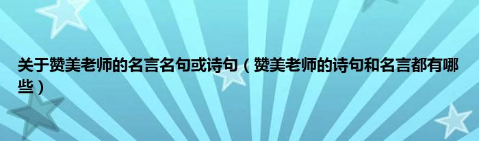 大家好,小科来为大家解答以上问题。关于赞美老师的名言名句或诗句,赞美老师的诗句和名言都有哪些很多人还不知道,现在让我们一起来看看吧!