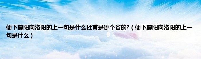 大家好,小科来为大家解答以上问题。便下襄阳向洛阳的上一句是什么杜甫是哪个省的?,便下襄阳向洛阳的上一句是什么很多人还不知道,现在让我们一起来看看吧!