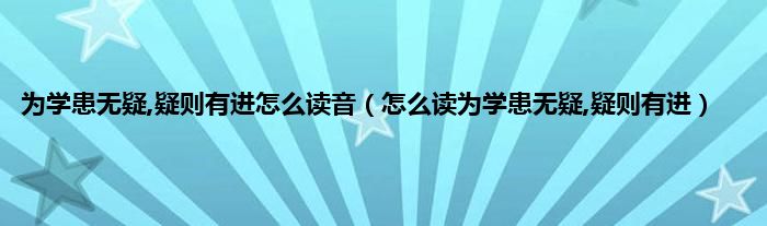 大家好,小科来为大家解答以上问题。为学患无疑,疑则有进怎么读音,怎么读为学患无疑,疑则有进很多人还不知道,现在让我们一起来看看吧!