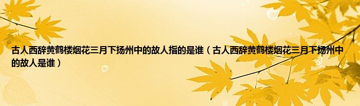 大家好,小科来为大家解答以上问题。古人西辞黄鹤楼烟花三月下扬州中的故人指的是谁,古人西辞黄鹤楼烟花三月下扬州中的故人是谁很多人还不知道,现在让我们一起来看看吧!