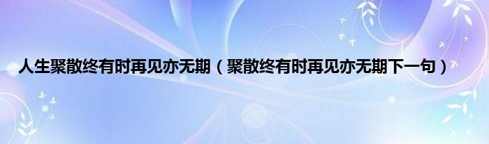 大家好,小科来为大家解答以上问题。人生聚散终有时再见亦无期,聚散终有时再见亦无期下一句很多人还不知道,现在让我们一起来看看吧!