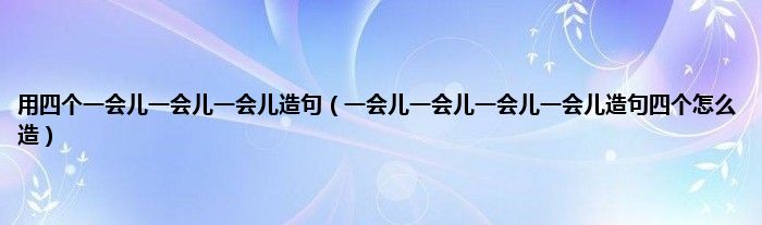 大家好,小科来为大家解答以上问题。用四个一会儿一会儿一会儿造句,一会儿一会儿一会儿一会儿造句四个怎么造很多人还不知道,现在让我们一起来看看吧!