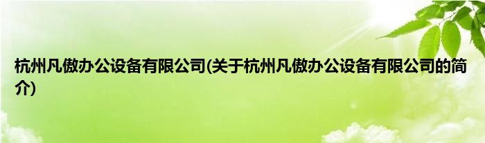 本文关于杭州凡傲办公设备有限公司的简介就讲解完毕,希望对大家有所帮助。