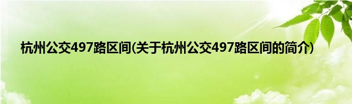 本文关于杭州公交497路区间的简介就讲解完毕,希望对大家有所帮助。