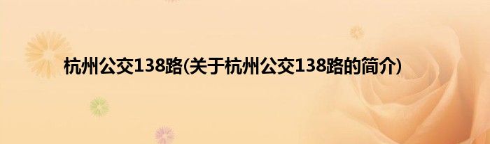 本文关于杭州公交138路的简介就讲解完毕,希望对大家有所帮助。