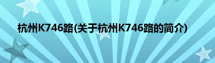 本文关于杭州K746路的简介就讲解完毕,希望对大家有所帮助。