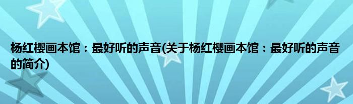 本文关于杨红樱画本馆:最好听的声音的简介就讲解完毕,希望对大家有所帮助。