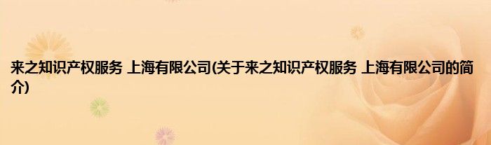 本文关于来之知识产权服务 上海有限公司的简介就讲解完毕,希望对大家有所帮助。
