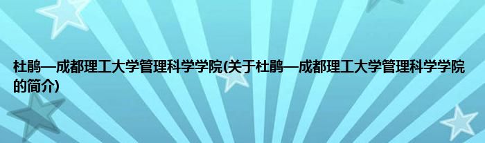 本文关于杜鹃—成都理工大学管理科学学院的简介就讲解完毕,希望对大家有所帮助。