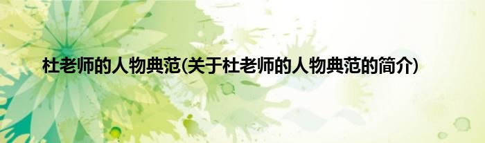 本文关于杜老师的人物典范的简介就讲解完毕,希望对大家有所帮助。