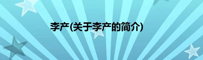 大家好,李产,关于李产的简介很多人还不知道,现在让我们一起来看看吧!