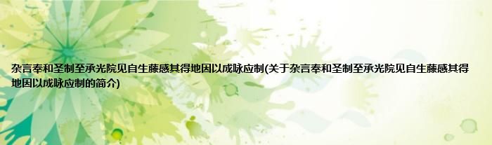 本文关于杂言奉和圣制至承光院见自生藤感其得地因以成咏应制的简介就讲解完毕,希望对大家有所帮助。