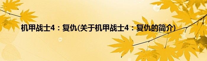 本文关于机甲战士4:复仇的简介就讲解完毕,希望对大家有所帮助。