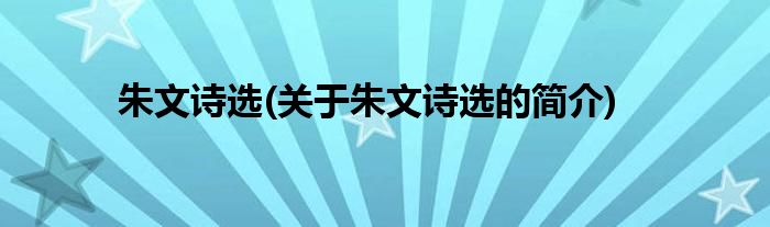 本文关于朱文诗选的简介就讲解完毕,希望对大家有所帮助。