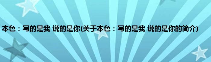 本文关于本色:写的是我,说的是你的简介就讲解完毕,希望对大家有所帮助。