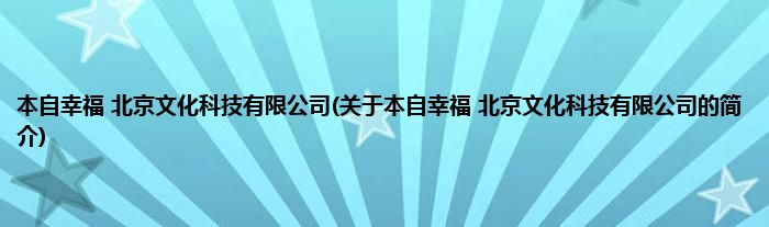 本文关于本自幸福 北京文化科技有限公司的简介就讲解完毕,希望对大家有所帮助。