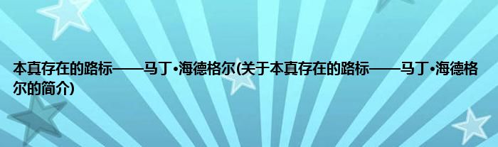 大家好,本真存在的路标——马丁·海德格尔,关于本真存在的路标——马丁·海德格尔的简介很多人还不知道,现在让我们一起来看看吧!