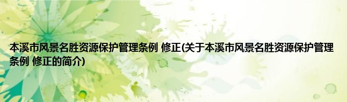 本文关于本溪市风景名胜资源保护管理条例 修正的简介就讲解完毕,希望对大家有所帮助。