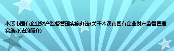 大家好,本溪市国有企业财产监督管理实施办法,关于本溪市国有企业财产监督管理实施办法的简介很多人还不知道,现在让我们一起来看看吧!