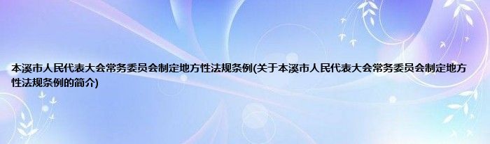 大家好,本溪市人民代表大会常务委员会制定地方性法规条例,关于本溪市人民代表大会常务委员会制定地方性法规条例的简介很多人还不知道,现在让我们一起来看看吧!