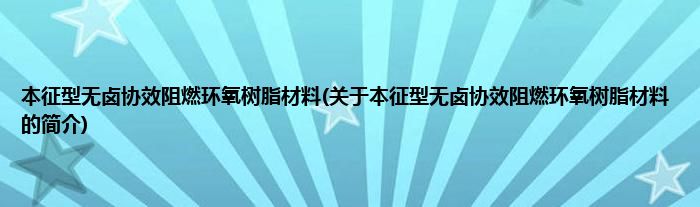 本文关于本征型无卤协效阻燃环氧树脂材料的简介就讲解完毕,希望对大家有所帮助。